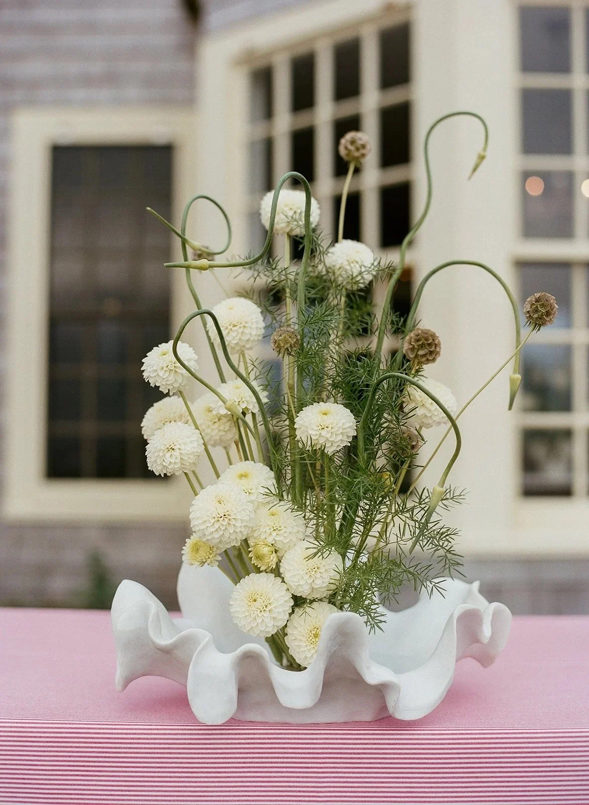 Each guest is guided through the process of creating their own arrangement using locally sourced, seasonal florals, working intuitively and without rules. Designs are finished in curated vessels — ceramic compotes, vintage glass, or footed bowls — each one chosen to feel special and lasting.